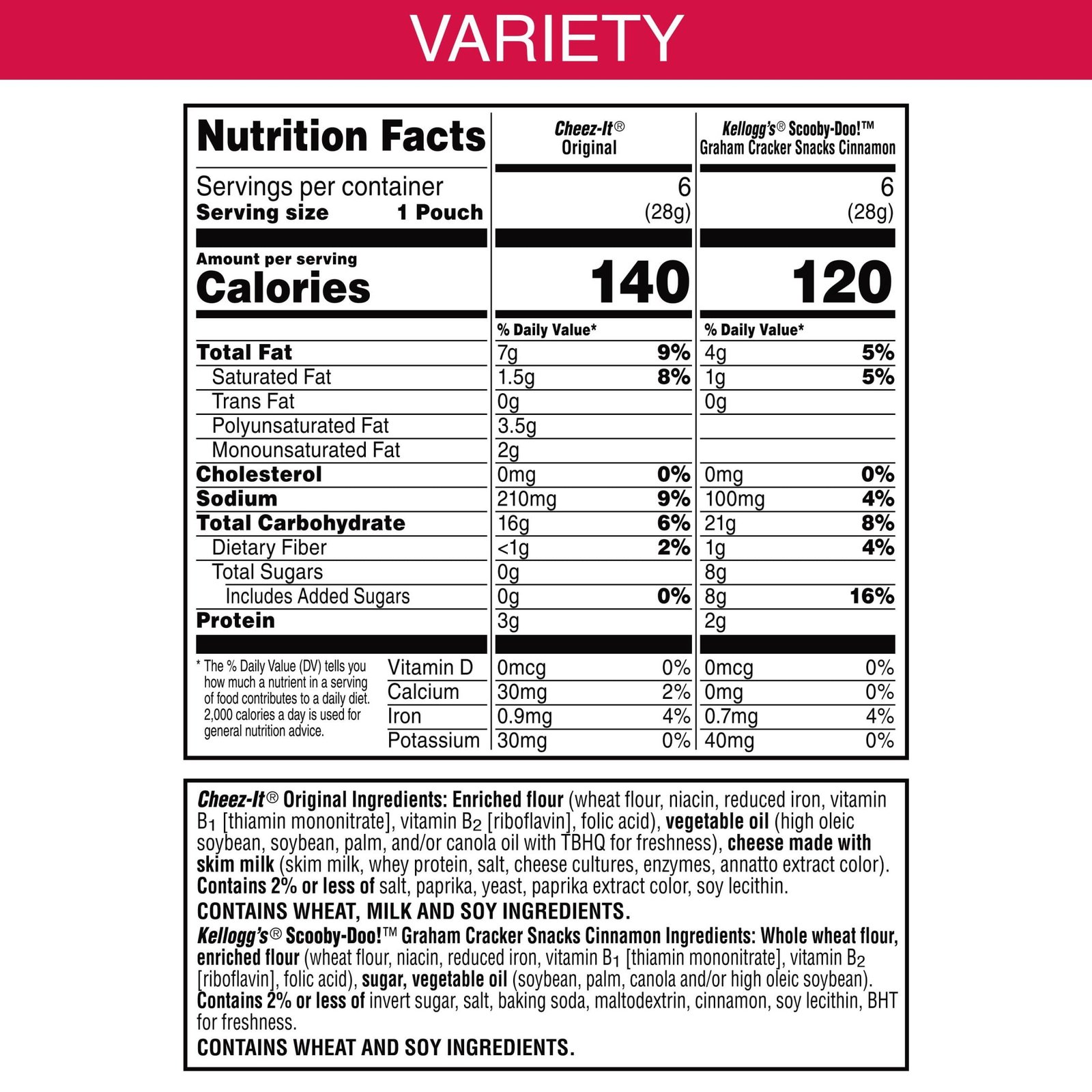 - Family-favorite variety pack contains wheat, milk, and soy ingredients